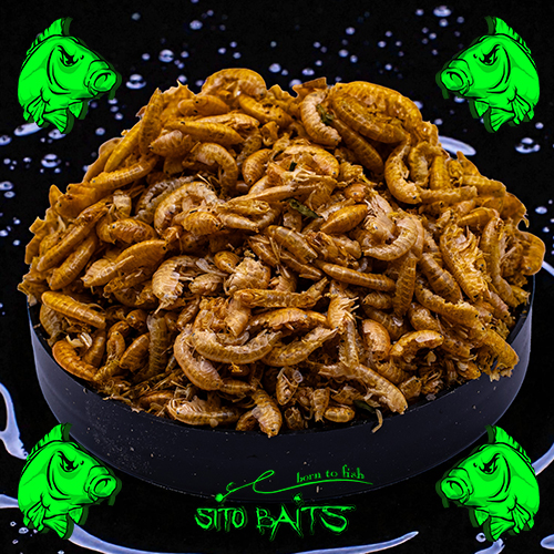 Es eignen sich aber algemein alle unser getrocknete Insekten dafür sehr gut ,da sich z.B. aus den Futterballen immer wieder einzelne Insekten lösen und aufsteigen so habt ihr über die ganze Wassersäule eine Lockwirkung und bringt so die Fische auf den Gewässergrund.